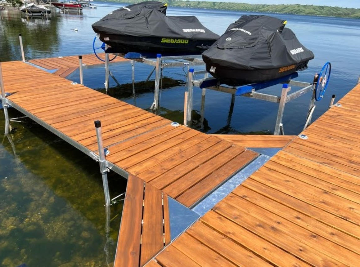 “Our custom dock connectors enables a one person install and removal, even enabling you to remove your dock in the fall